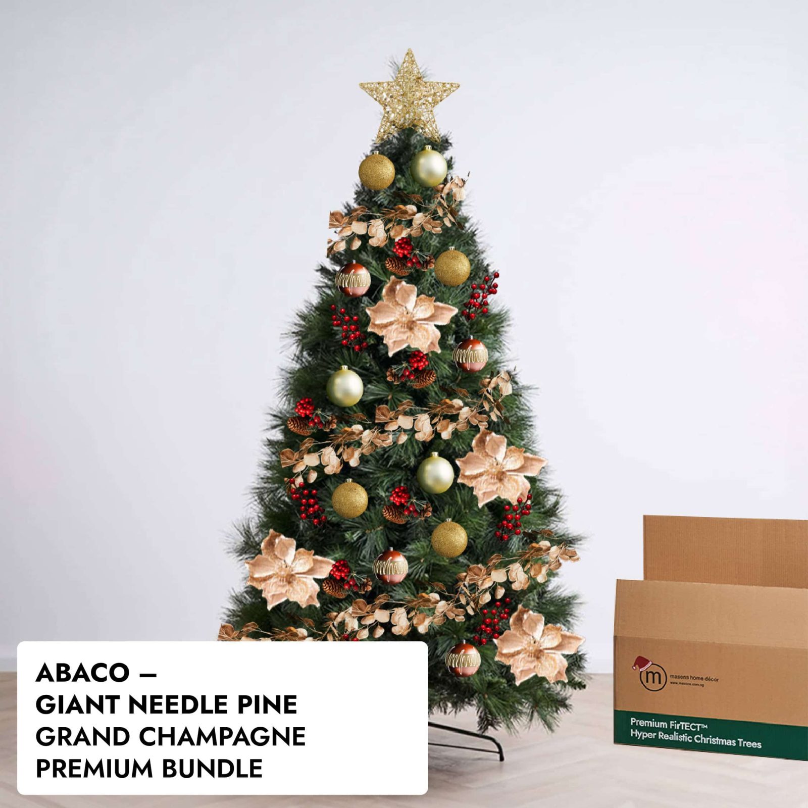 Despite its show-stopping looks, the Abaco is incredibly easy to set up. It arrives in compact packaging, fluffs up beautifully, and holds both large and small ornaments with ease. Pair it with grand bows, delicate florals, or minimalist décor — the Abaco makes anything look elegant.