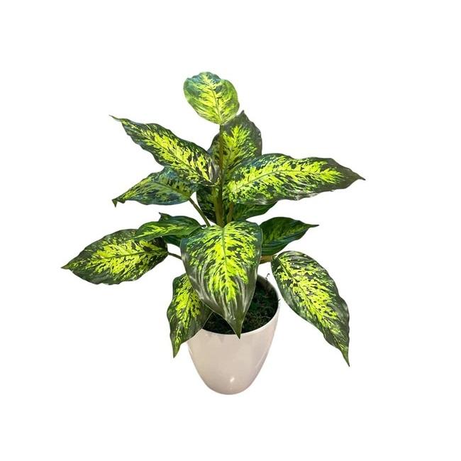 Artificial Dieffenbachia Bush – White Melamine Pot
