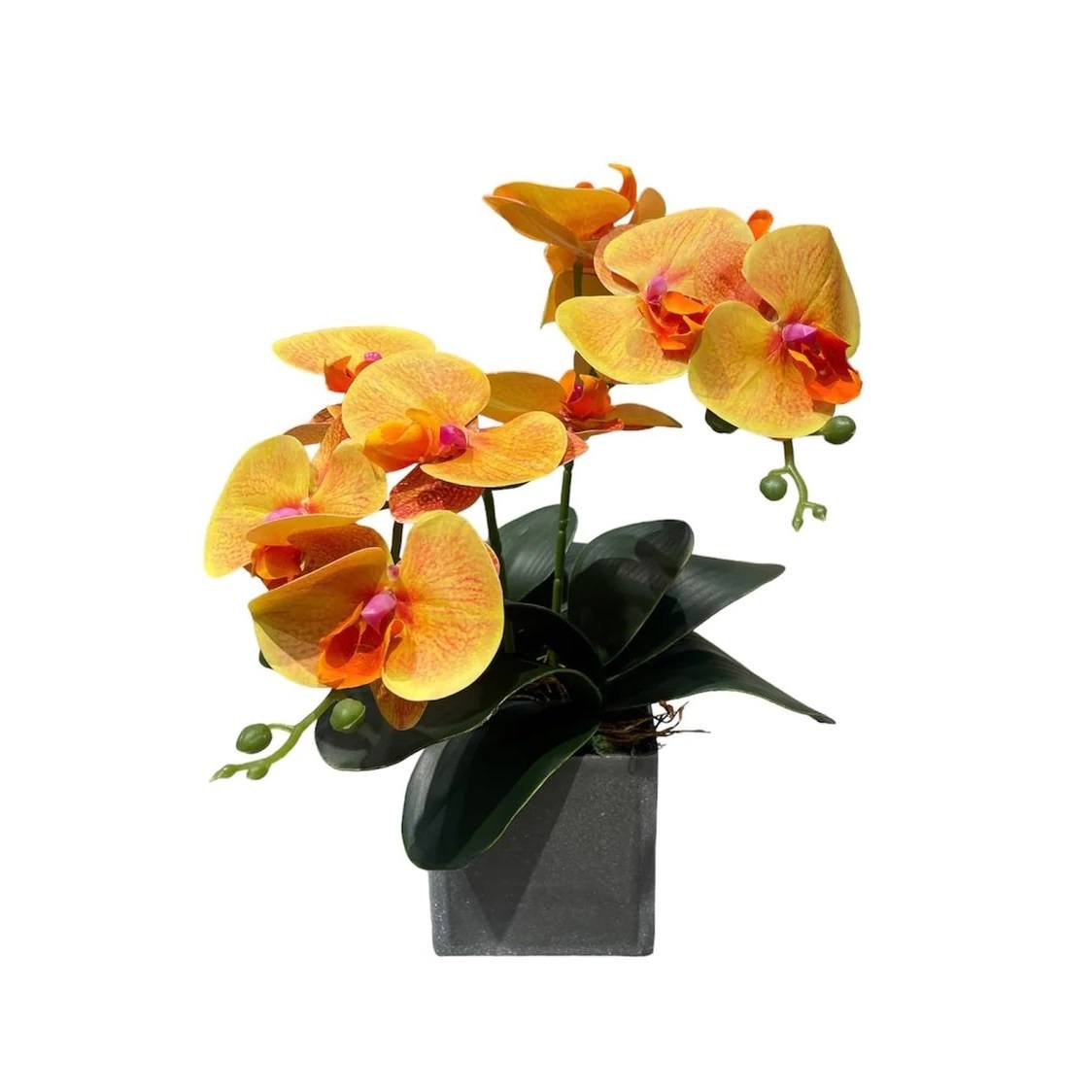 Artificial Mini Double-Stalk Phalaenopsis Orchid Arrangement- 0.4m – Pot Grey – Orange