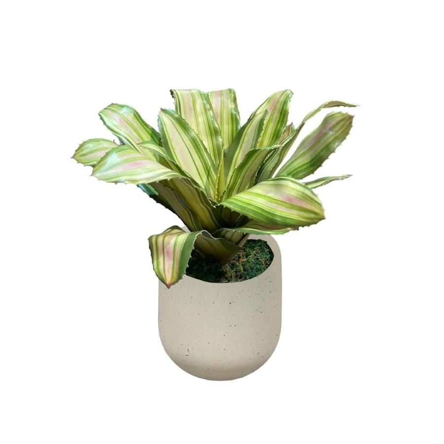 Artificial Yellow-Green Bromelia – 0.35m – Pot White