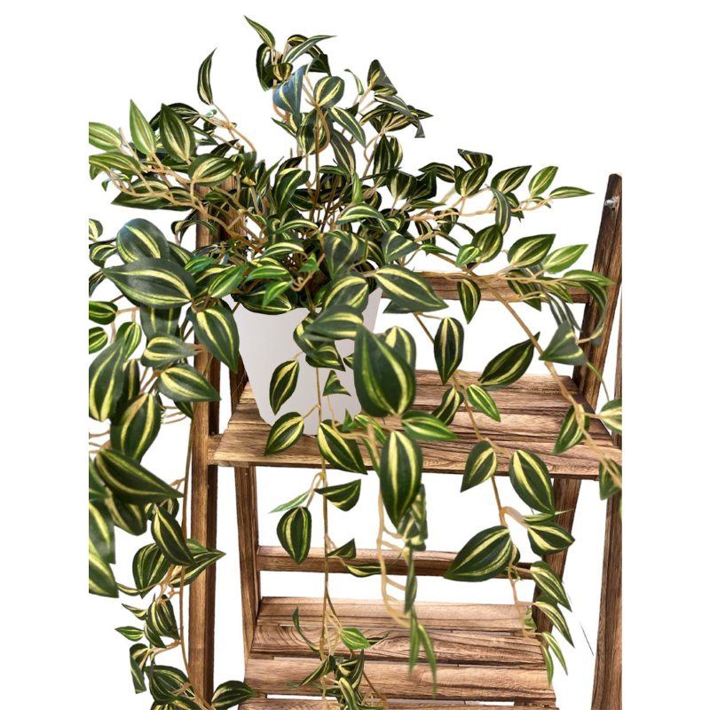 Artificial Yellow Green Wandering Jew Bush (With Wooden Stand) – White Melanin Pot