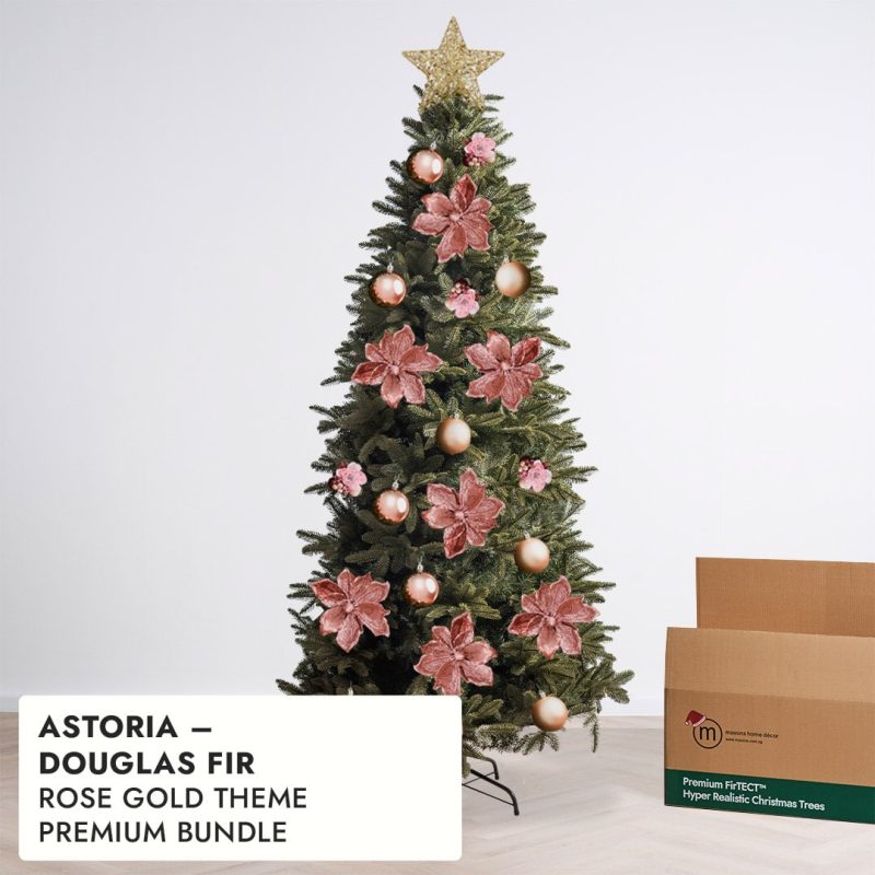 Skip decorations made with artificial fir branches or cheap-looking greens — their overly saturated tones can clash with Astoria’s refined realism. Instead, opt for crisp metallic, velvet ribbons, or glass ornaments to complement the tree’s elegant form.