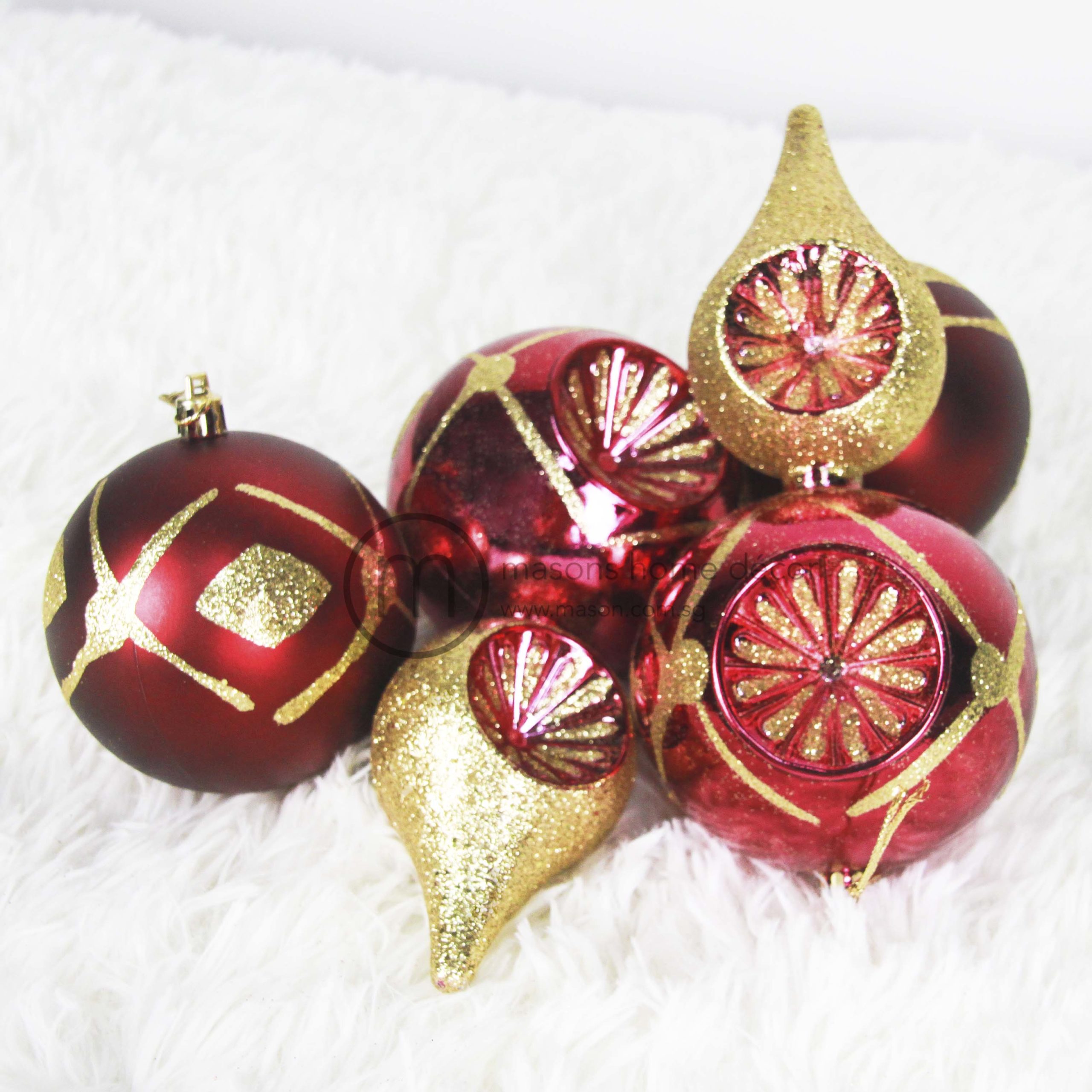One set comes with 2 finial baubles (15cm) and 2 normal baubles (8cm)