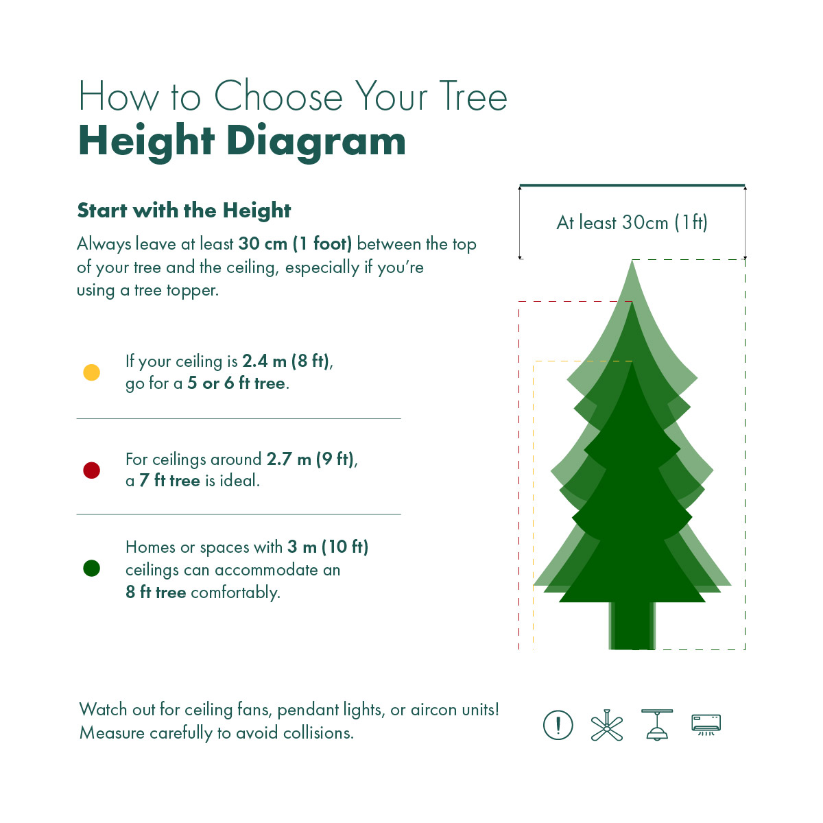 Designed for spacious HDBs, maisonettes, and homes with 2.6 m ceilings. Also ideal for community areas, mid-sized retail displays, or reception counters that call for a visually striking festive centrepiece.