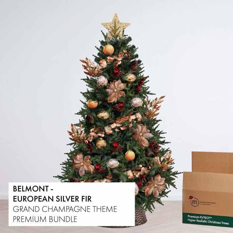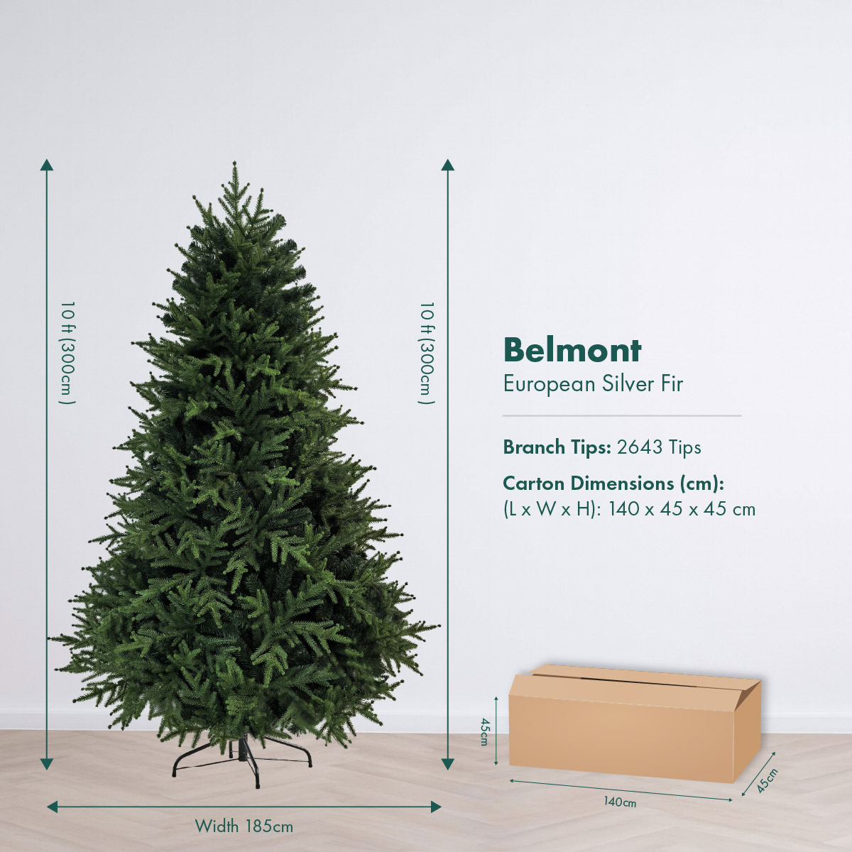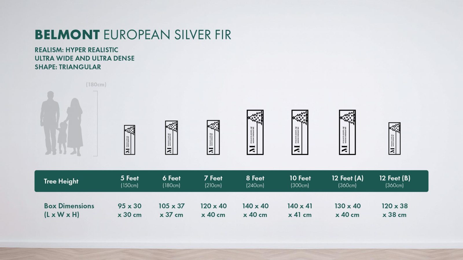 The Belmont Euro Silver Fir complements nearly every festive style. Its fine-tipped needles and open layering bring out the beauty of both minimalist ornament sets and lavish, colour-rich décor.