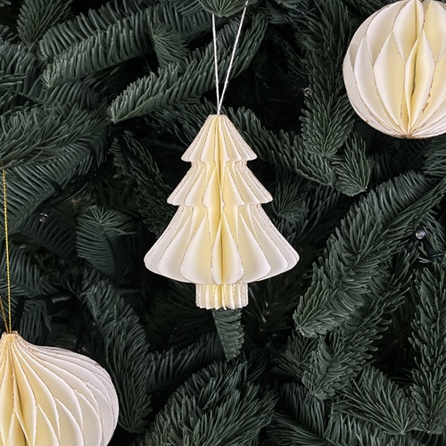 Add understated sophistication with the ELDRIA Winter Bauble Set – Ivory. Each foldable ornament reveals a delicate lattice pattern when opened, showcasing artisanal craftsmanship in a modern design. The set features three versatile shapes – a pine tree, a round bauble, and a finial – all in a soft ivory finish that pairs beautifully with gold, champagne, or neutral-themed trees. Ideal for creating a look that feels elegant, light, and timeless, these ornaments add refined beauty to any holiday display.