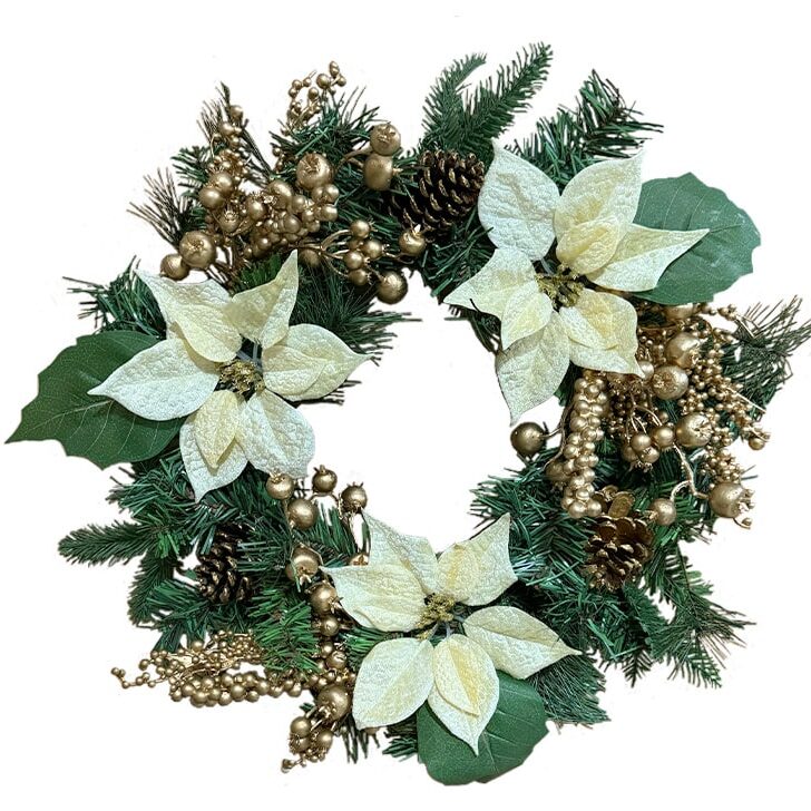 Lovely combination of ornaments on this wreath, am glad I ordered this besides the xmas tree.