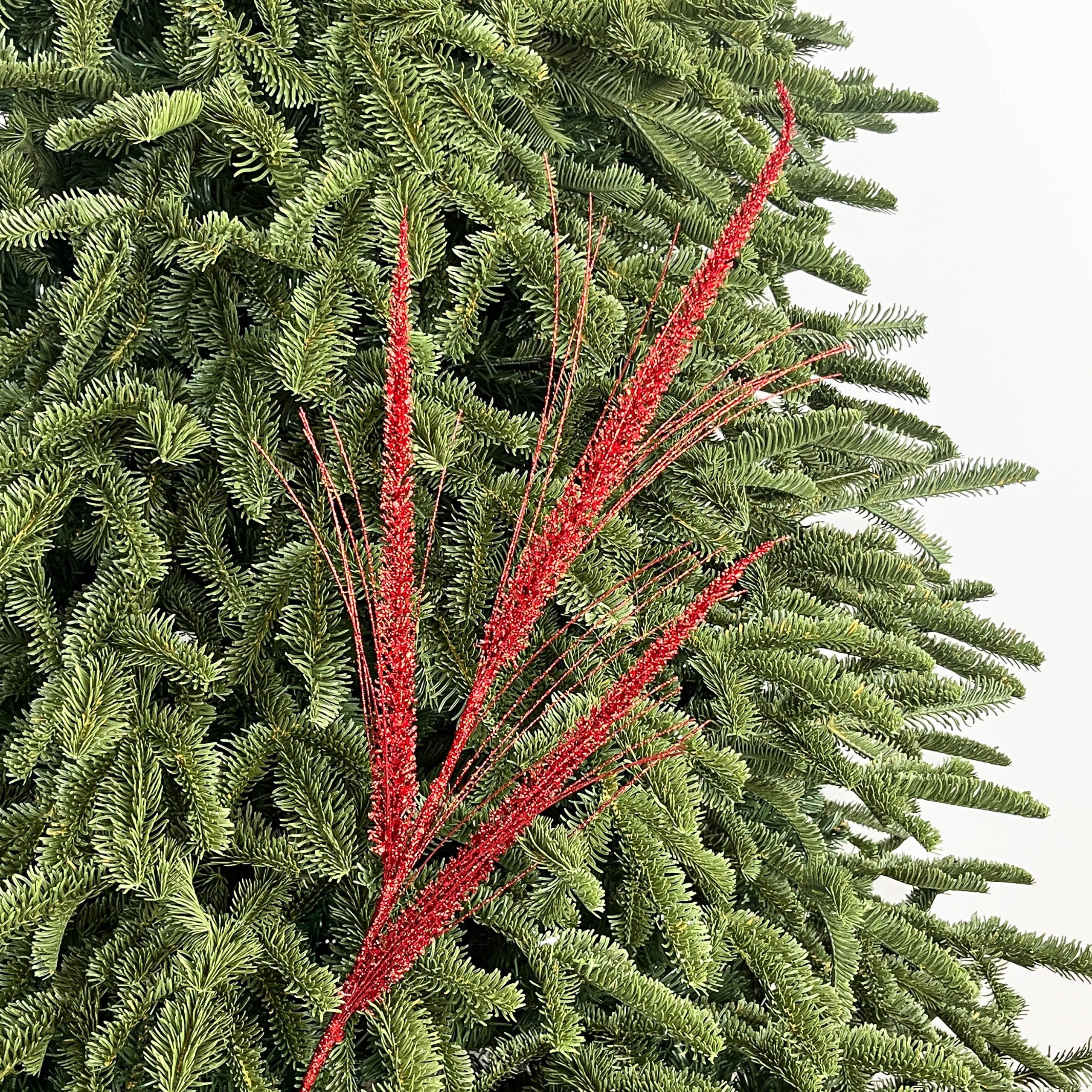 Infuse your décor with festive vibrance using the LUNETH Tall Taper Grass Spray – Red. Tall, tapering stems in rich red with a luminous finish make this piece a striking addition to Christmas trees, wreaths, and garlands. Pair with gold or green ornaments for a traditional palette, or mix with silver and white for a modern, eye-catching theme. Its bold colour and sleek design add both height and festive energy to your holiday displays.