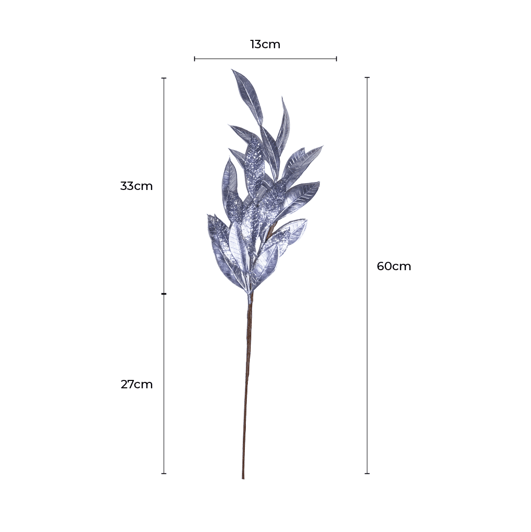 The Tekoa Leaf Spray in Silver is a striking botanical accent crafted with a blend of matte and glittery textures that bring a dynamic contrast to your holiday décor. Each spray features delicate, frosted silver leaves that shimmer subtly under lights, mimicking the sparkle of fresh morning frost. Tuck it into your Christmas tree, wreaths, or table arrangements to create a frost-kissed winter aesthetic. Its cool-toned elegance makes it perfect for white Christmas, icy luxe, or minimalist themes.